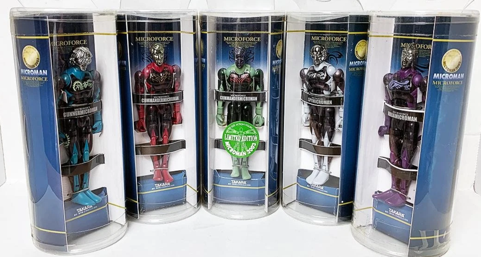Takara 2003 Microman Micro Size Force Commander 5 Action Figure Set Ninja Gunner Spy Limited Edition