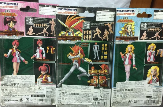 Takara 1/18 Microman Micronauts MA-21 MA-22 MA-23 Gaogaigar Shishioh Guy Mikoto Utsugi Swan White 3 Figure Set