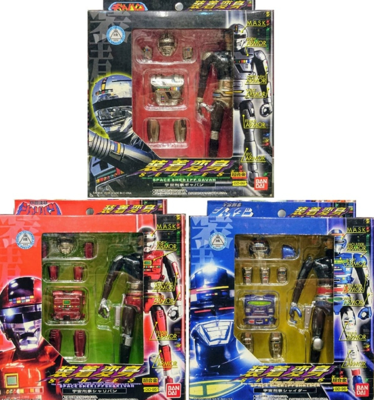 Bandai Chogokin Souchaku Henshin Series Metal Hero Series Space Sheriff Gavan Sharivan Shaider GD-89 GD-95 GD-96 3 Action Figure Set